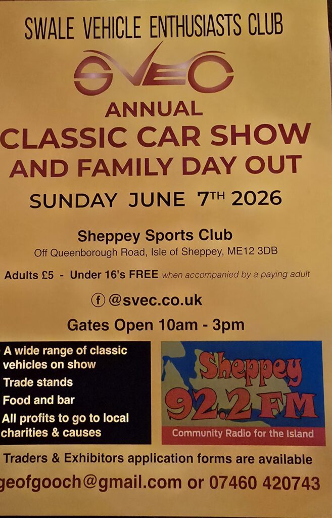Would you like to show your car at our Swale Vehicle Enthusiasts’ Club Annual Show and Family Day Out – See you on the 7st June.2026Would you like to show your car at our Swale Vehicle Enthusiasts’ Club Annual Show and Family Day Out – See you on the 7st June.2026
